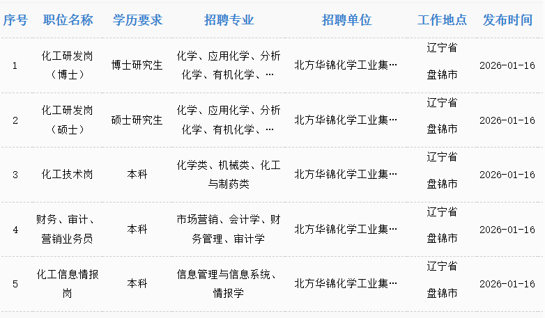 中国兵器校园招聘平台发布了北方华锦2026校招岗位 时间:2026/1/19 阅读:431 次